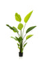 De Strelizia is een prachtige plant die vrij moeilijk in leven te houden is in het Nederlandse klimaat. Daarom kun je waarschijnlijk beter deze kunst Strelizia aanschaffen. Je zult nauwelijks verschil merken want met zijn mooie zijden bladeren geeft hij een ‘net echt’ gevoel. Eigenlijk best een duurzame keuze dus als je erover nadenkt. De Nederlandse naam Paradijsvogelbloem komt van de schitterende bloemen die in de tropen groeien aan de Strelizia. Met paars en oranje lijken ze wel op vogels. In de Nederlandse huiskamers bloeit de Paradijsvogelbloem niet, dus ook onze kunst Strelizia wordt zonder bloemen geleverd. De grote bladeren zijn een genot op zich. Onze Strelizia Nicolai is ook verkrijgbaar in een maat kleiner.